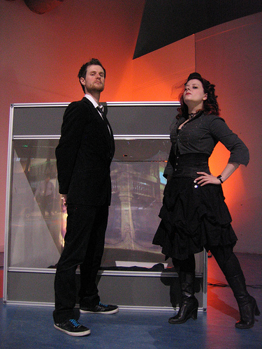 The touch-sensitive humanaquarium interface makes the dialogue between performer and audience